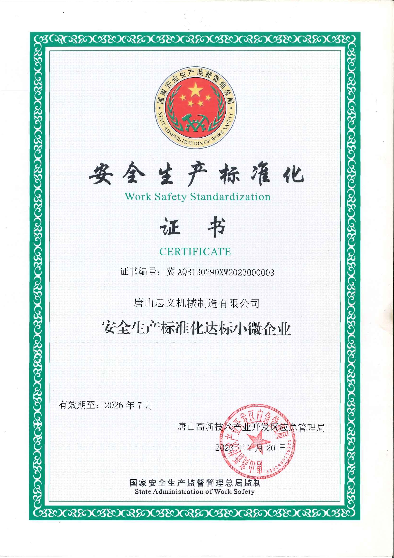 安全生產(chǎn)標(biāo)準(zhǔn)化證書新 發(fā)布時(shí)間:2025-08-18 點(diǎn)擊: 119 上一條: ISO9001質(zhì)量體系認(rèn)證 下一條: 建材機(jī)械行業(yè)榮譽(yù)證書